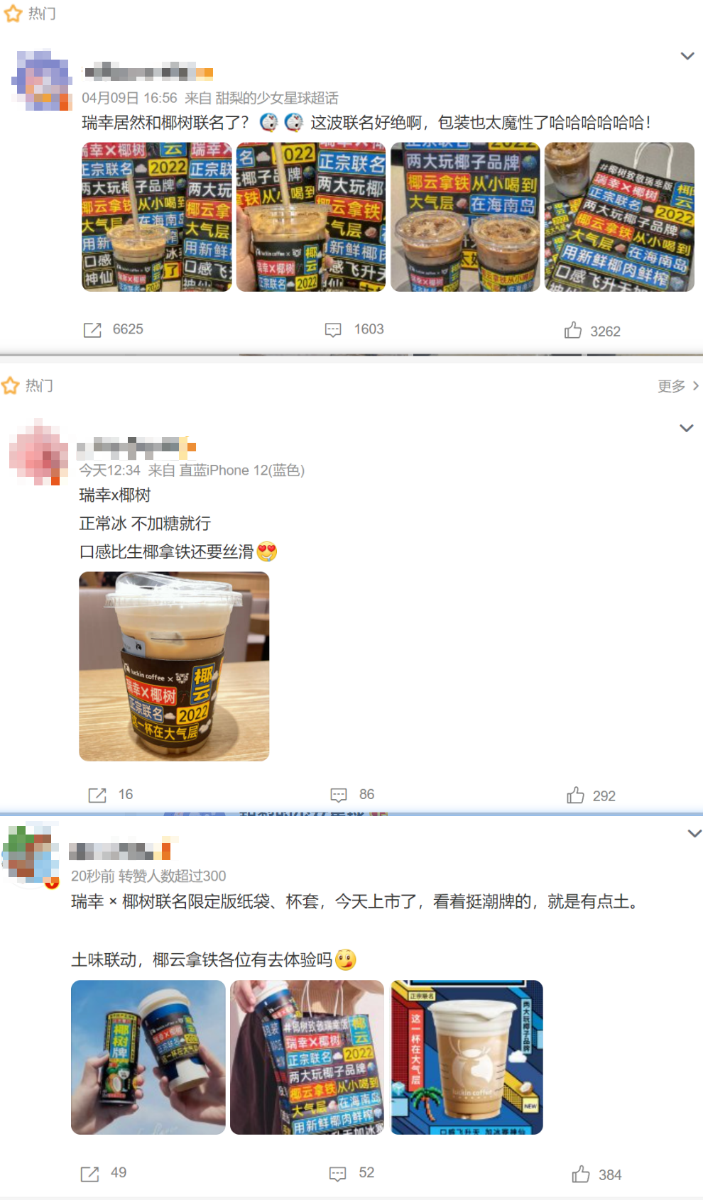 三是通過公關(guān)軟文、跨界聯(lián)名等方式,借由客戶或合作伙伴的評論、分享、二次傳播、口碑傳播塑造用戶的信任,加快購買決策。菲諾在今年3月攜手蜜雪冰城旗下咖啡品牌幸運咖,聯(lián)合推出新品“椰椰拿鐵”,定價10元,強調(diào)“平價而不低端”的產(chǎn)品特點。而本次椰樹與瑞幸聯(lián)名,也是椰樹擺脫形象老化,擁抱年輕群體的嘗試。作為椰樹34年來的對外聯(lián)名活動本身話題性就極強,同時又正值擁有龐大自有流量池的瑞幸咖啡發(fā)起以#生椰拿鐵1周年紀念日#的話題互動抽獎,自然吸引了大量用戶前來參與,擴大聲量,增加品牌曝光。