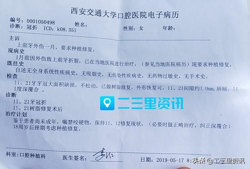 趙先生稱,延大附屬醫(yī)院口腔科大夫已對(duì)孩子兩顆門牙暫時(shí)修補(bǔ),專家建議孩子在18周歲后可做全冠保護(hù),或未滿18周歲前拔除考慮種植修復(fù),門牙不可以咬硬物。隨后他帶孩子去西安交通大學(xué)口腔醫(yī)院,專家給的建議還是18周歲后擇期考慮種植修復(fù)。