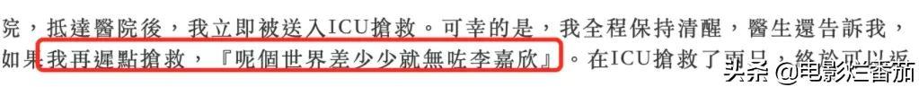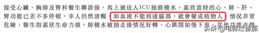好在當(dāng)時(shí)李嘉欣的意識(shí)還比較清醒,否認(rèn)血液無法到達(dá)腦部,她就有可能成為植物人。