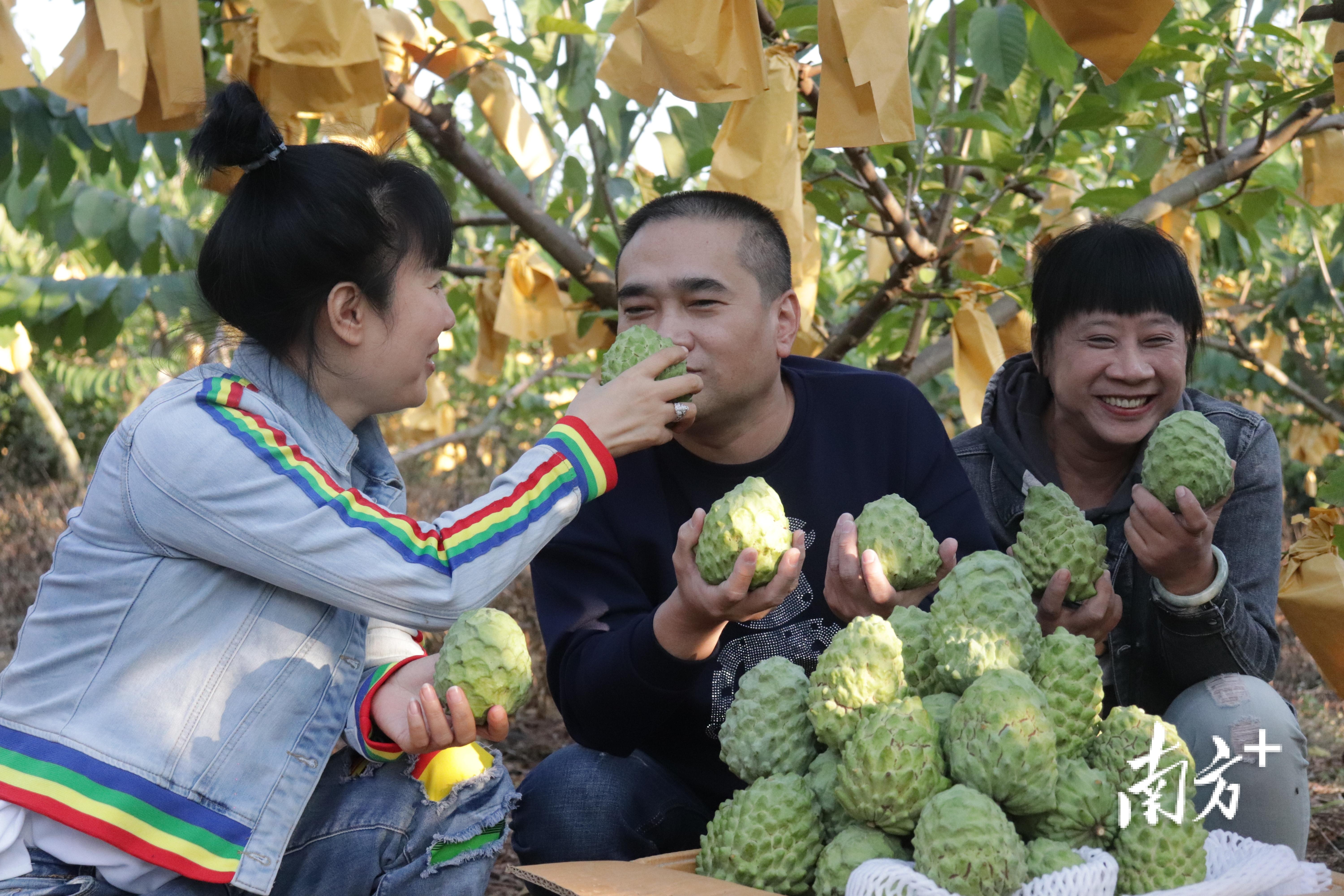 走進(jìn)湛江雙雙贏農(nóng)業(yè)有限公司(下稱“雙雙贏”)1號(hào)種植基地,一棵棵釋迦樹掛滿了青綠色的果實(shí),果香彌漫,只見果樹上釋迦果長勢(shì)良好,形似佛頭,又像荔枝。12月25日,這批釋迦果迎來采摘,當(dāng)天共摘了約5000斤。
