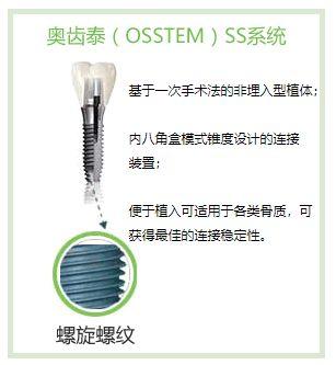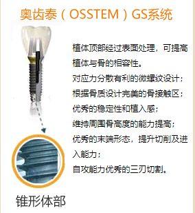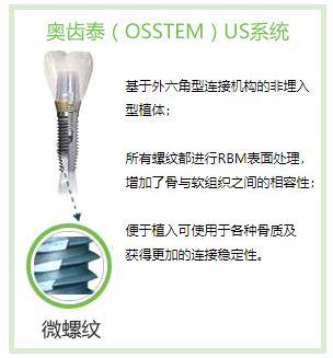 奧齒泰種植體是由韓國(guó)奧齒泰公司精心研發(fā)的OSSTEM種植系統(tǒng),OSSTEM種植體先后獲得ISO-9001、CE、和FDA(第Ⅲ類)、SFDA等認(rèn)證,是目前國(guó)際上四大的種植技術(shù)之一,被譽(yù)為適合亞洲人的種植體。