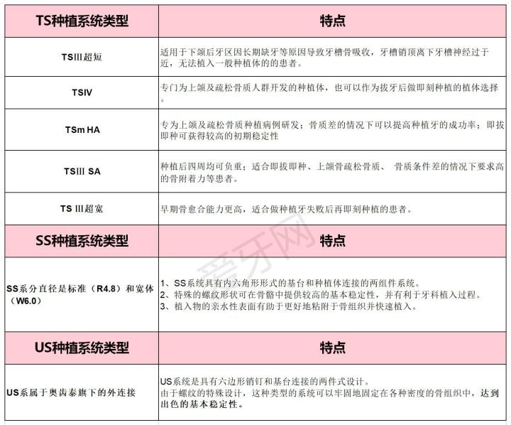 目前奧齒泰種植體旗下有三個(gè)系列,分別是常用的GS/TS系列,SS系列,US系列。這里給大家先簡(jiǎn)單總結(jié)一下這三個(gè)系列的區(qū)別: