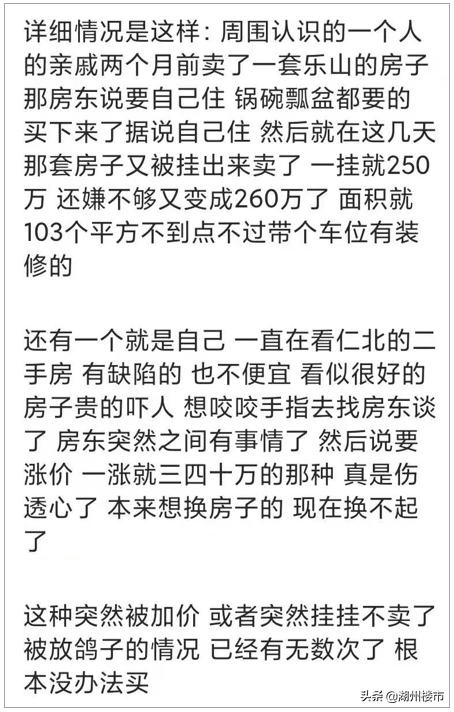 二手房主坐地起價,在南潯也有跡可循。有網(wǎng)友表示,房東臨時漲價幾萬,一氣之下直接買了新房項目。