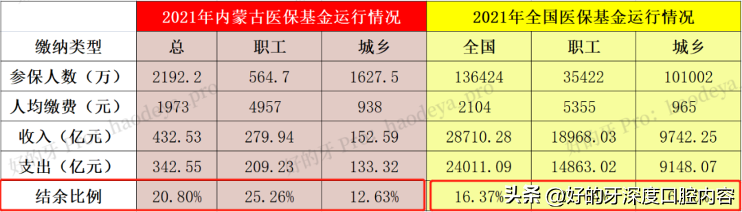 醫(yī)保結(jié)余多,這是內(nèi)蒙古種植牙進(jìn)入醫(yī)保支付的經(jīng)濟(jì)基礎(chǔ)。