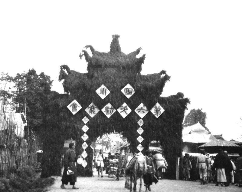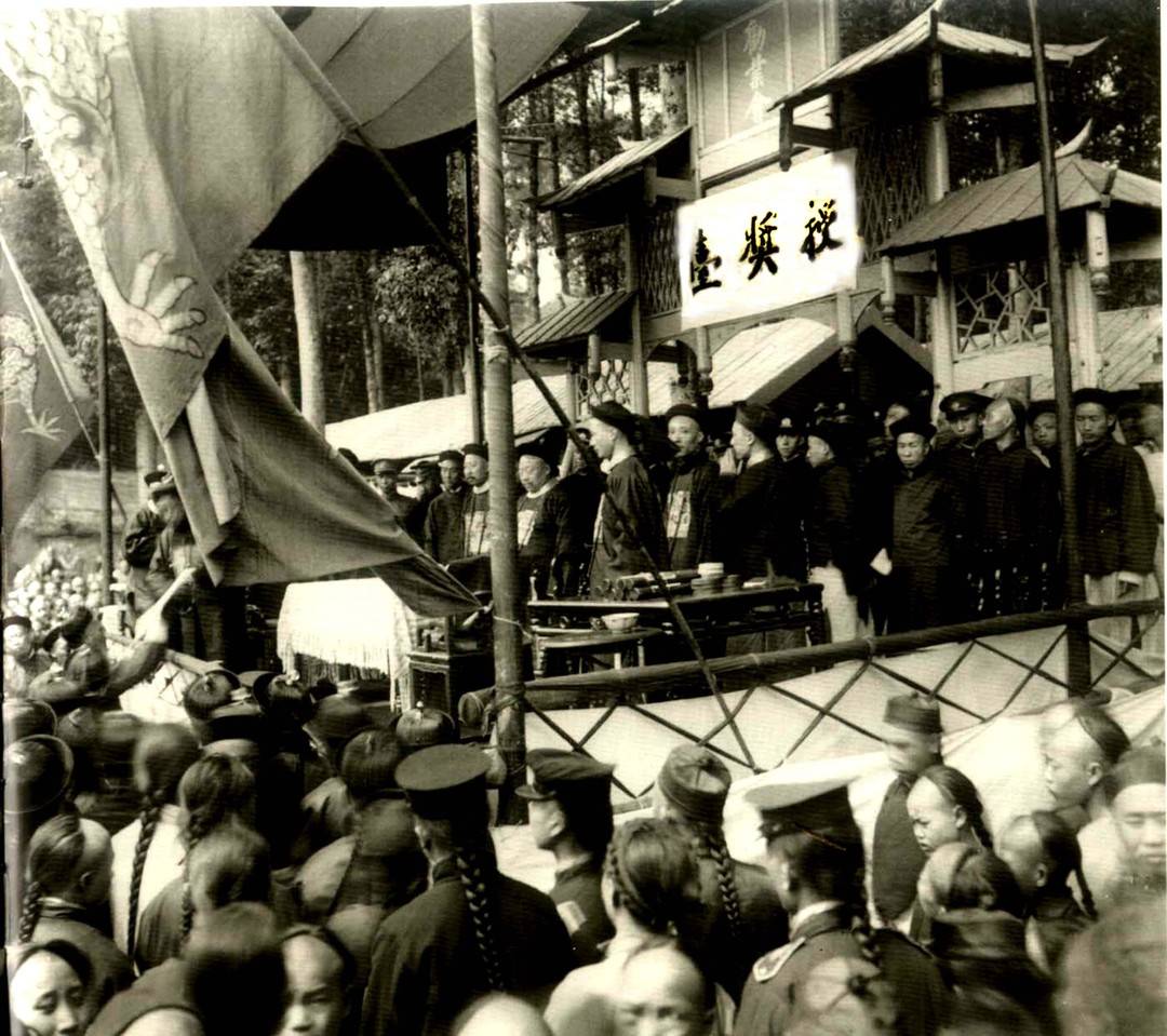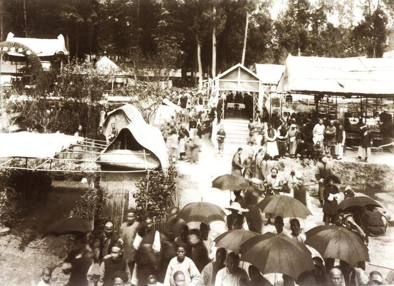 清朝官員們?cè)谇嘌驅(qū)m廟會(huì)“授獎(jiǎng)臺(tái)”上頒獎(jiǎng) 攝影:[美國(guó)]路得?那愛德