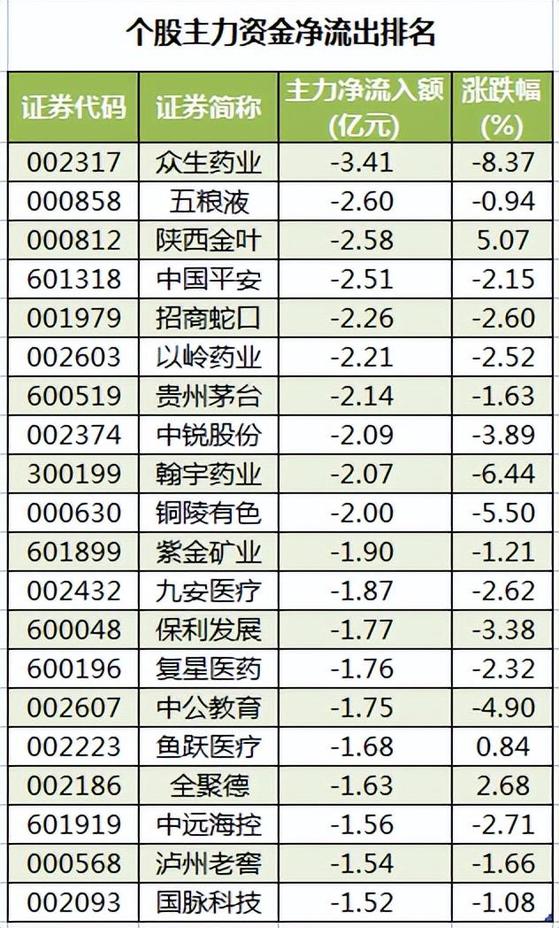 此外,2603只個股被主力資金凈賣出,其中,37股被主力資金凈賣出超1億元。