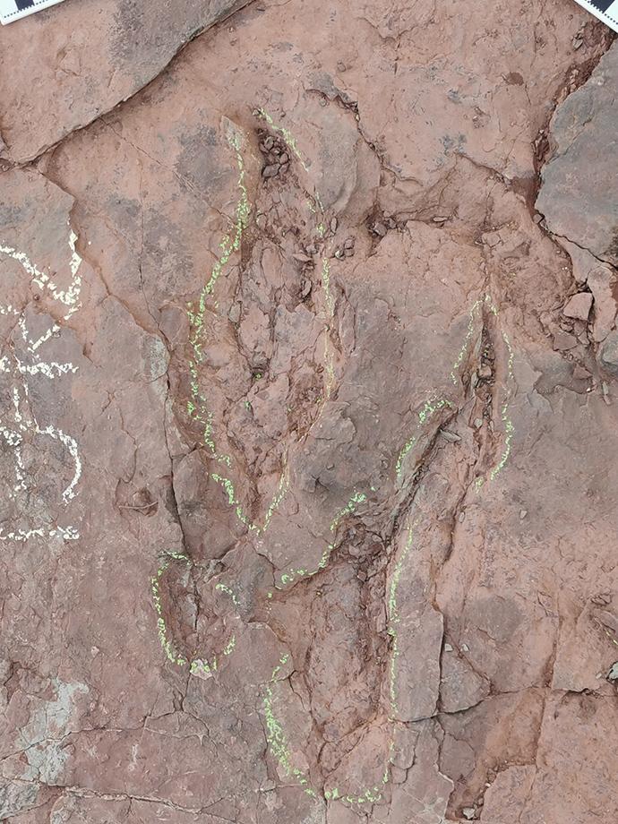 這是中國發(fā)現(xiàn)大型恐爪龍類的行跡,也是目前中國范圍內(nèi)發(fā)現(xiàn)的大的恐爪龍類足跡。