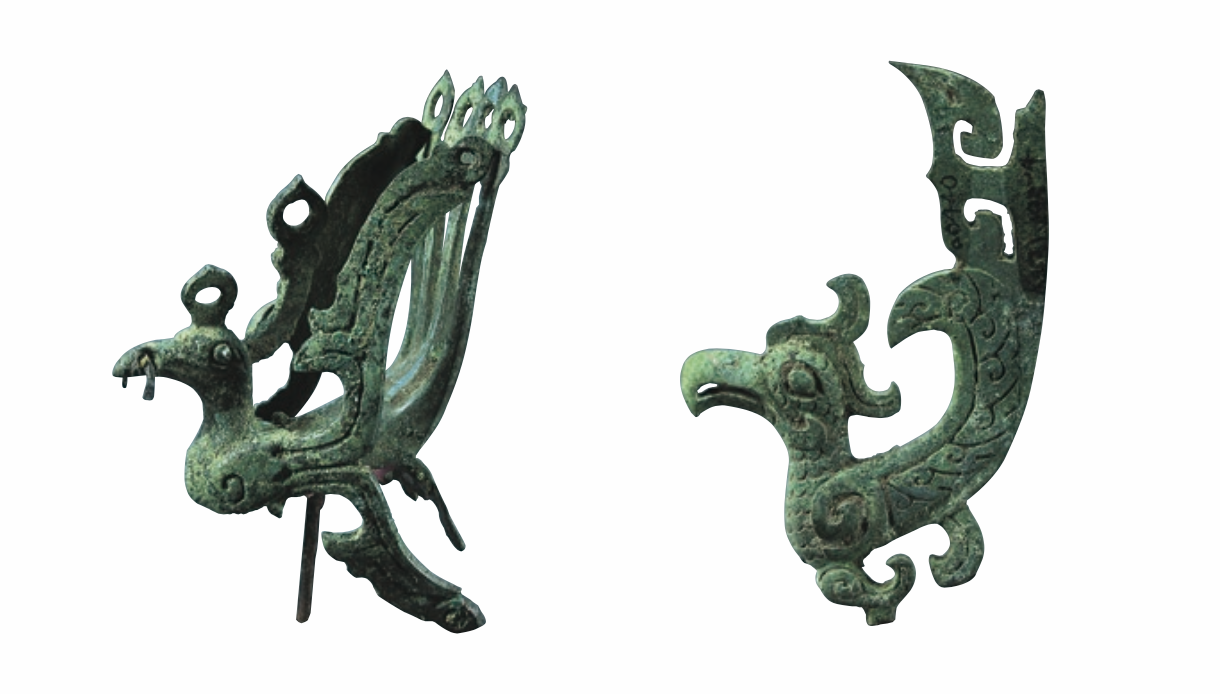 口說無憑,他們似乎還簽下了協(xié)議。在一件金杖上,刻有這樣一幅圖畫:四根羽箭平行射入兩個(gè)人頭之中,箭頭分別穿入兩條魚的頭部,箭尾則是兩只展翅的飛鳥。一個(gè)新的說法是,兩個(gè)人頭代表著“笄發(fā)”和“辮發(fā)”兩個(gè)部族,魚和鳥是它們的圖騰,羽箭則相當(dāng)于誓言。這是“笄發(fā)”和“辮發(fā)”們刻下的契約,寫下的是莊嚴(yán)和肅穆。