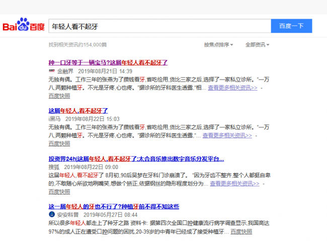 這就引起了筆者的興趣,怎么現(xiàn)在看個(gè)牙當(dāng)真貴到如此地步?結(jié)果上網(wǎng)一搜,“一口牙等于一輛寶馬”?這就有點(diǎn)不可思議了,這屆年輕人,真的要看不起牙了嗎?