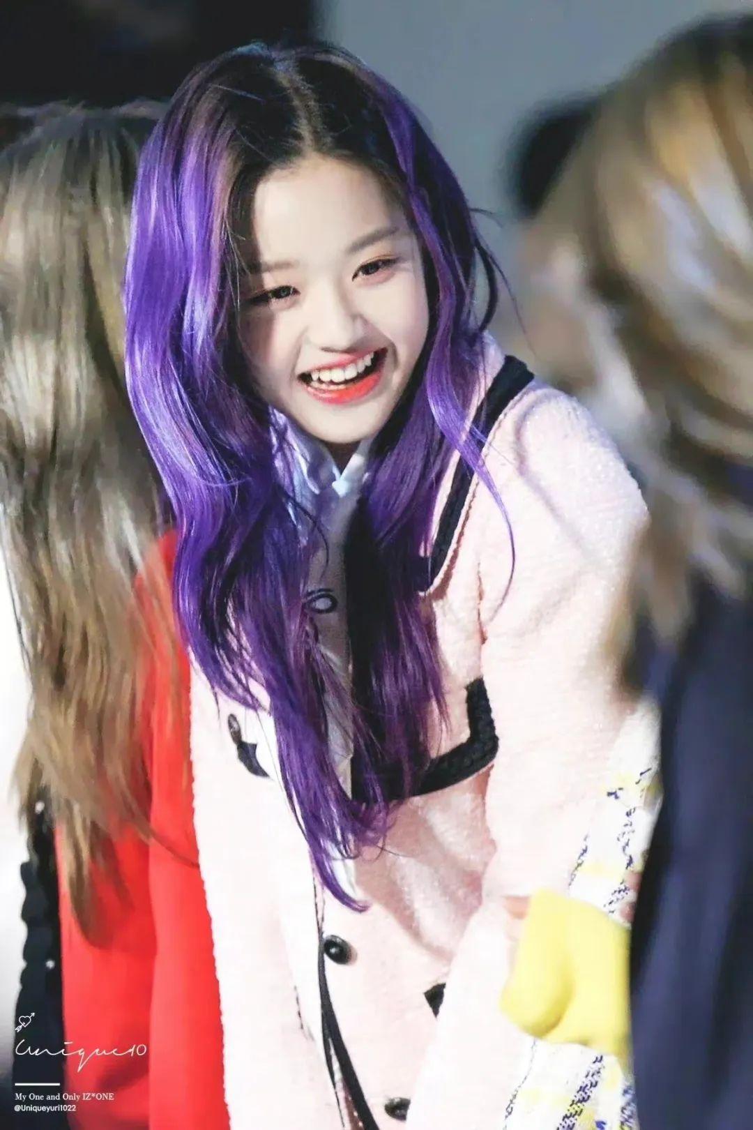 張?jiān)⑦€在IZone組合時(shí),為了配合專輯《violeta》紫羅蘭的概念,把頭發(fā)染成了紫色。