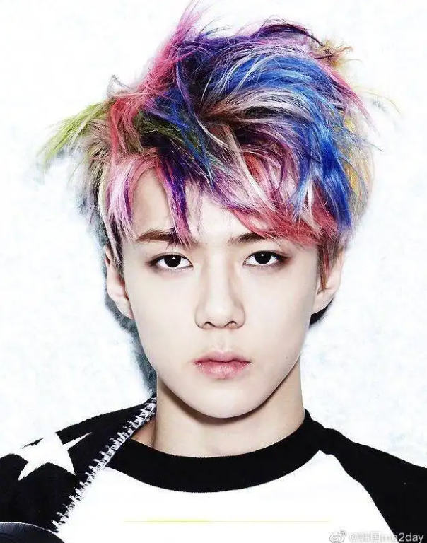 也有人,一次性集齊所有顏色。吳世勛的這個(gè)彩虹頭,就曾火過一陣。