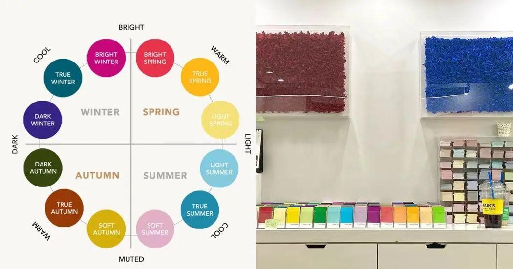 personal color把顏色分為春夏秋冬四種色系,通過一系列測(cè)試確定好適合的顏色type,在韓國愛豆和網(wǎng)紅之間很流行。