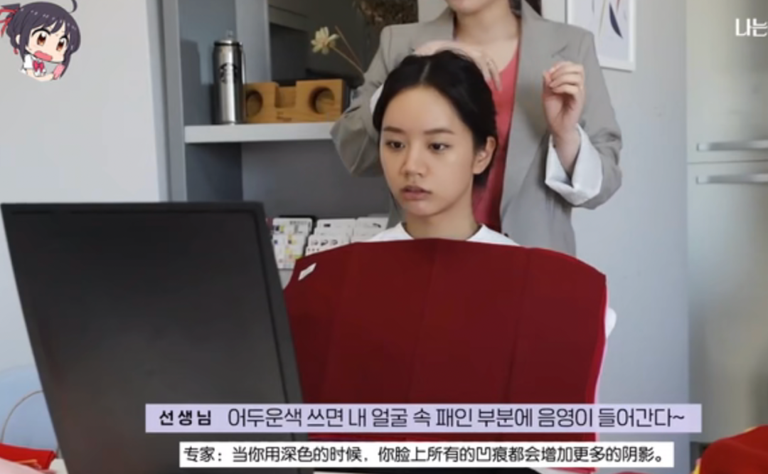 比如專家就說,棕色系對(duì)惠利來說就不合適,會(huì)顯得她黑眼圈更重,皮膚更暗。