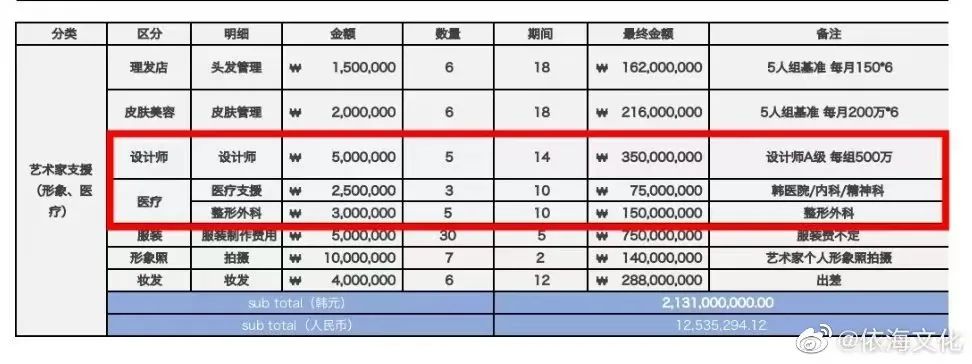 依海文化曬出的合同里,用的都是韓幣,所以是在韓國為這些練習(xí)生們做的這些項(xiàng)目。
