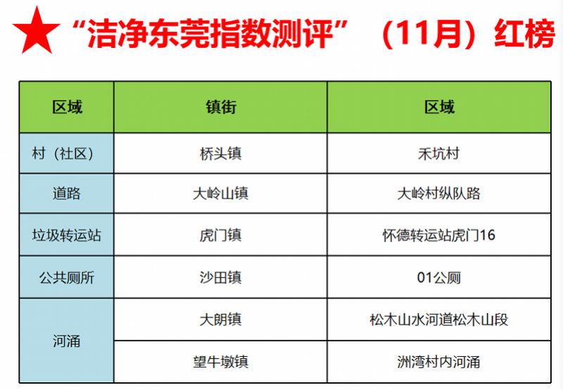 【11月“潔凈東莞指數(shù)測評”紅榜】