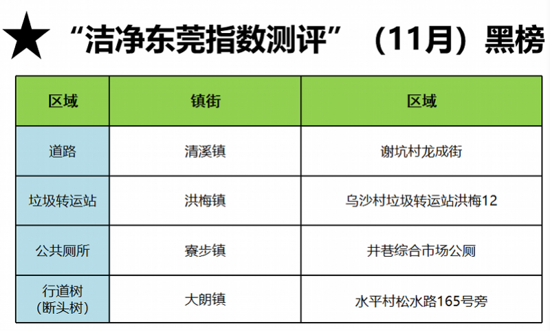 【11月份“潔凈東莞指數(shù)測評”黑榜】