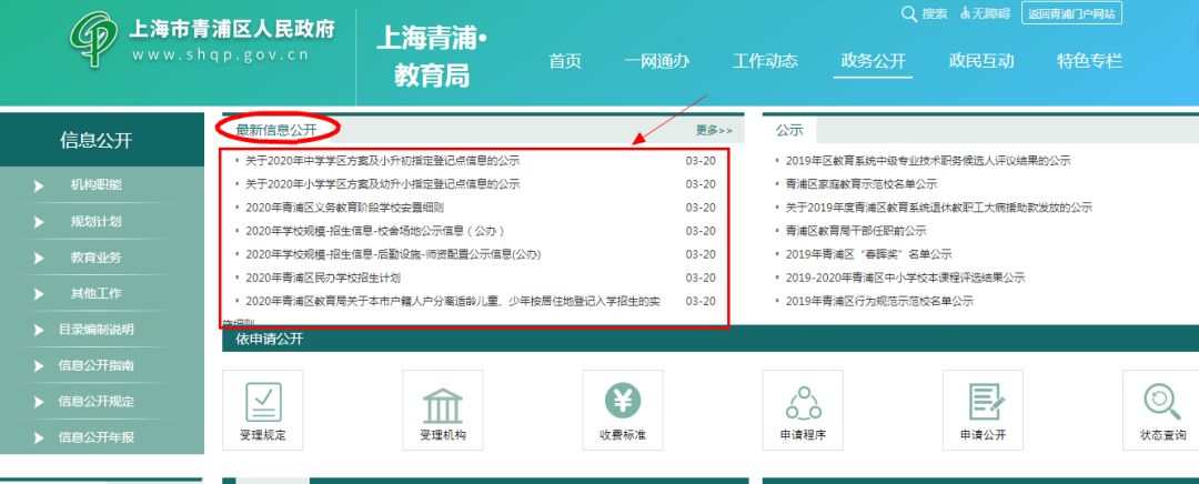 復(fù)制以下網(wǎng)址至瀏覽器,進(jìn)入青浦區(qū)政府網(wǎng)站“青浦區(qū)教育局”欄目的政務(wù)公開專欄,在“新信息公開”中點擊查看。