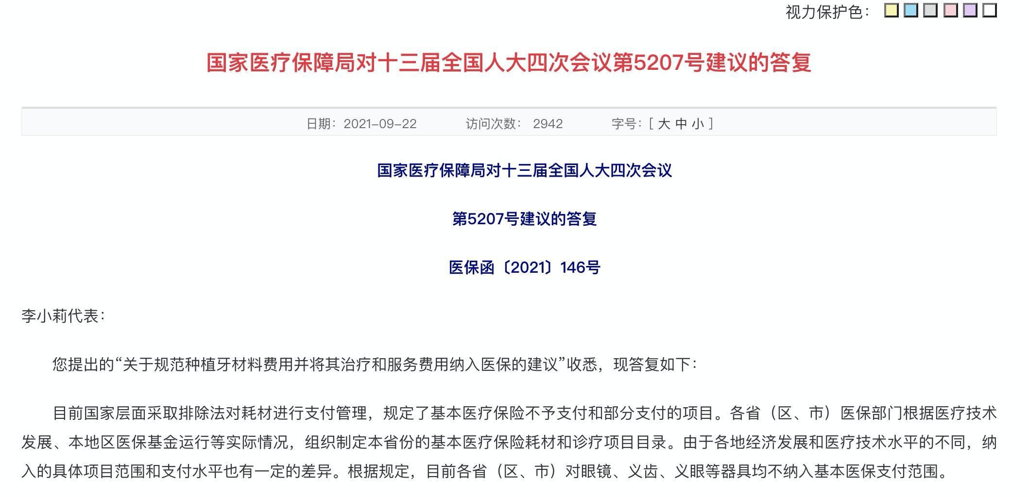 此次醫(yī)保局答復(fù)函稱:「指導(dǎo)地方將種植體納入平臺(tái)掛網(wǎng)范圍,促進(jìn)各品牌種植體價(jià)格陽(yáng)光透明,擠出水分。」