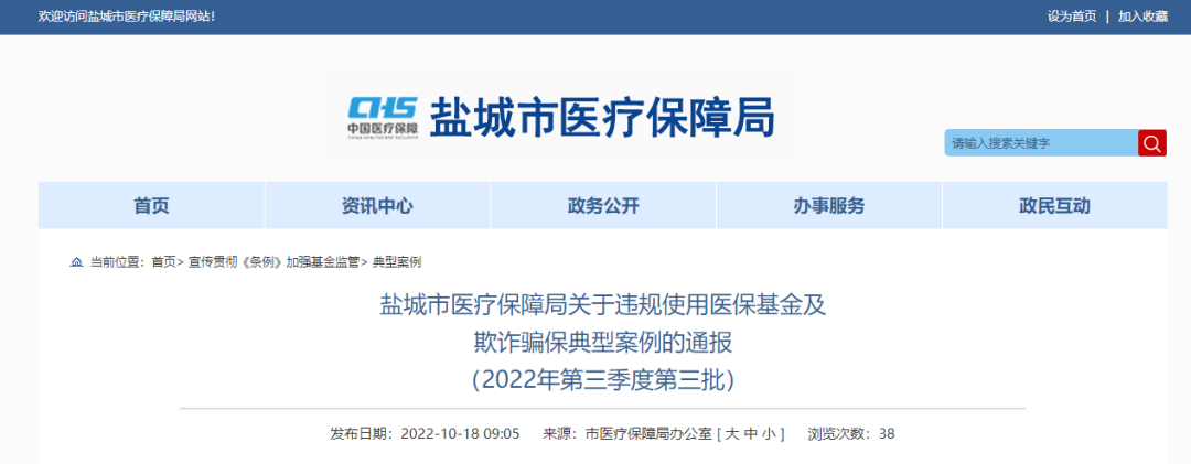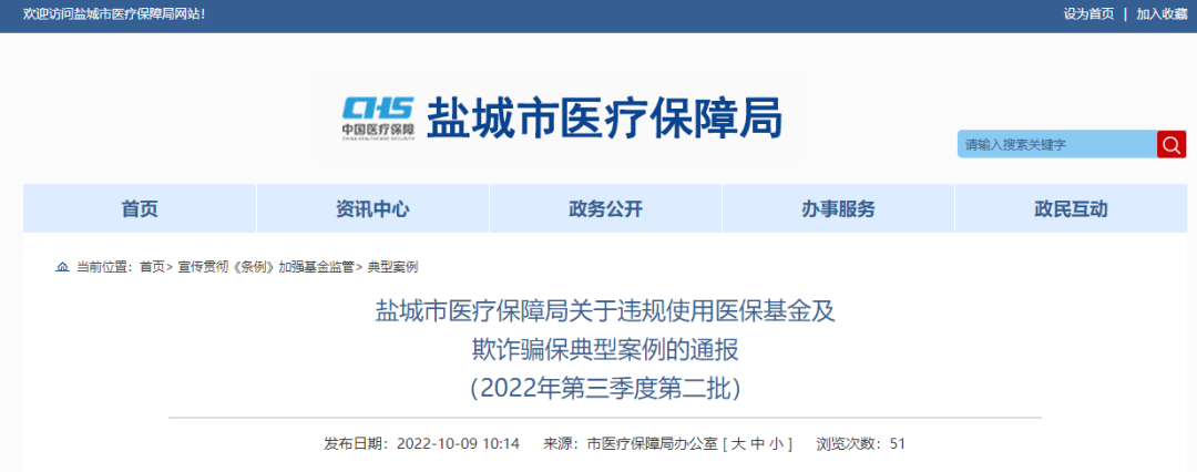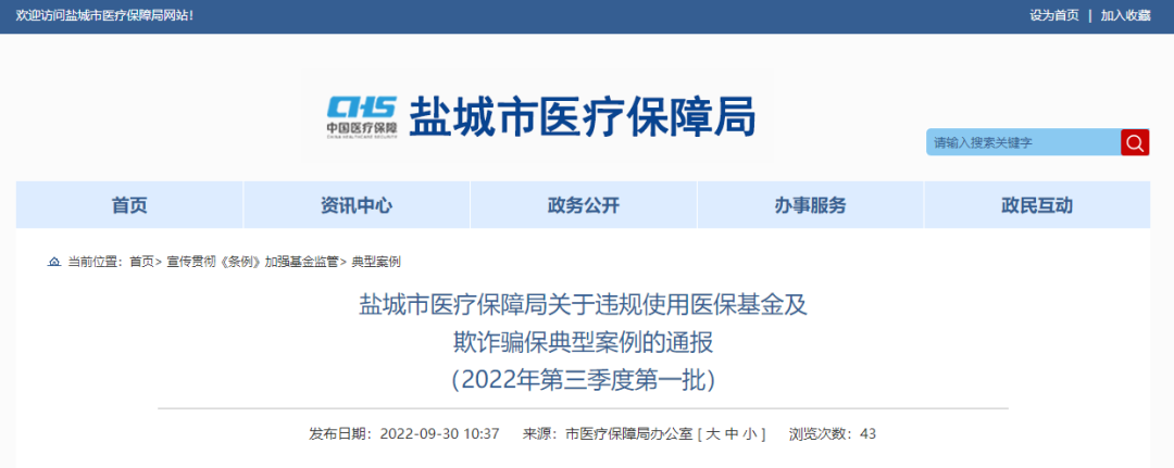鹽城市醫(yī)療保障局關(guān)于違規(guī)使用醫(yī)?;鸺捌墼p騙保典型案例的通報(2022年第三季度第二批)