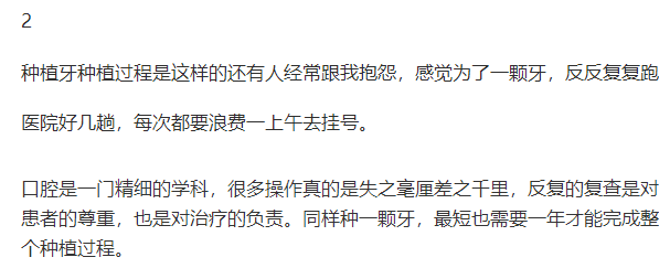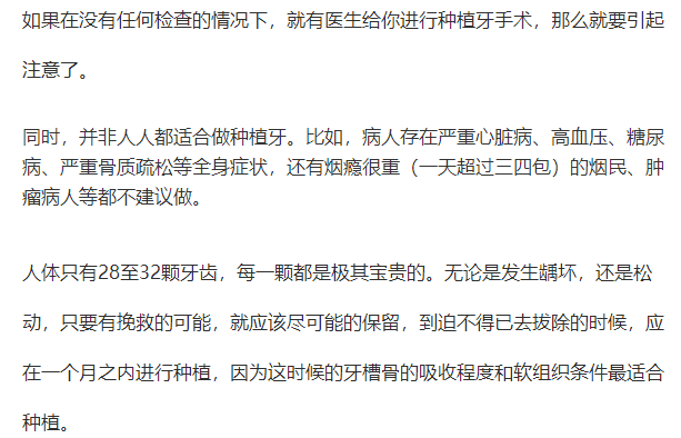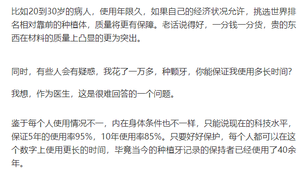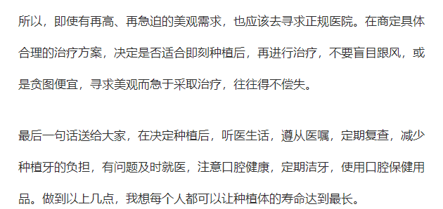 所以維持使用時(shí)間的建議就是日常潔牙,使用牙線等口腔保健用品;種植后1、3、6、12個(gè)月定期復(fù)診,保持口腔健康,不用種植牙去啃骨頭或拒絕過硬的物品,避免外力撞擊。
