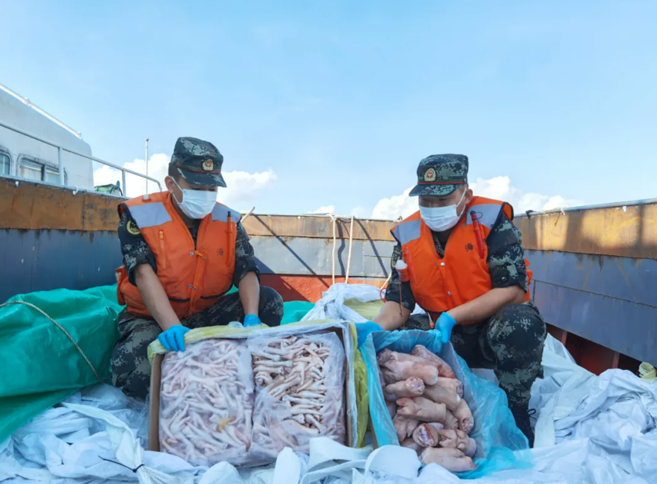 今年年初,東莞海警局就曾獲一起涉嫌大型走私凍品案件,三艘“三無”船舶裝滿了包括豬蹄、豬大腸等在內(nèi)的300余噸、案值超1200余萬元凍品,這些貨物均無合法有證明資料。