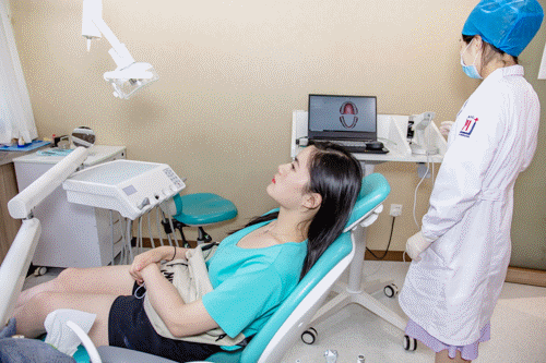 平躺在牙椅上張開嘴巴,護(hù)士小姐姐用裝有探頭的儀器在口內(nèi)進(jìn)行3D掃描,5分鐘時間不到,你牙齒的3D模型就會同步的展示在旁邊的電腦里!