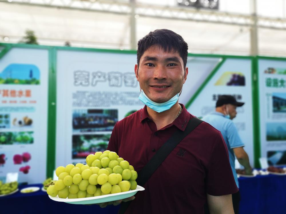 黃惠銘是東莞企石鎮(zhèn)“我的農(nóng)場”的“80后”農(nóng)場主。今年已經(jīng)是他第二次參加優(yōu)質(zhì)葡萄品評會。2020年,在東莞市首屆優(yōu)質(zhì)葡萄品評與推介會上,他種植的陽光玫瑰獲得金獎。
