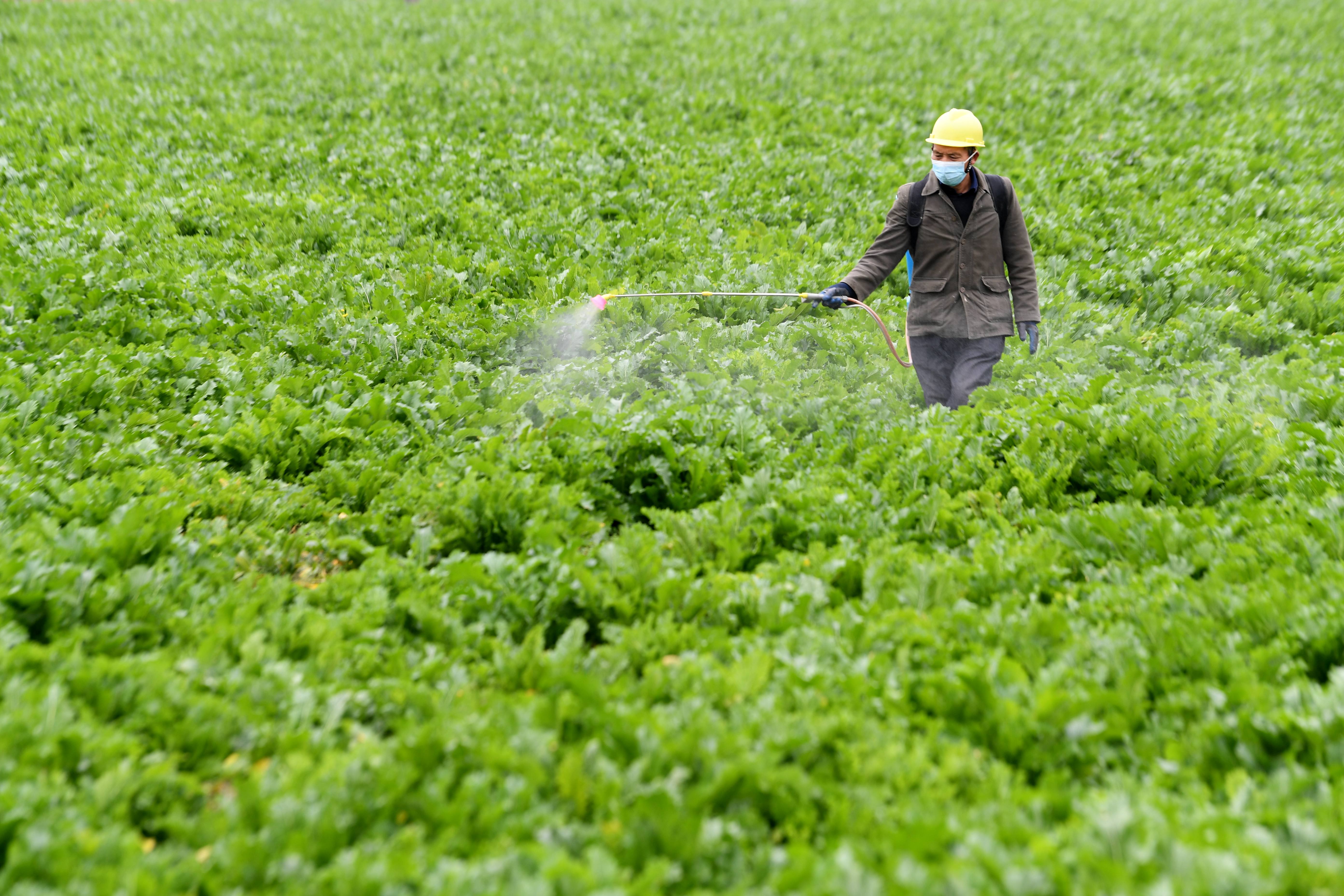 1月3日,農(nóng)民在貴州省黔東南苗族侗族自治州榕江縣車江壩區(qū)蔬菜基地噴施葉面肥。 新華社發(fā)(楊成利 攝)