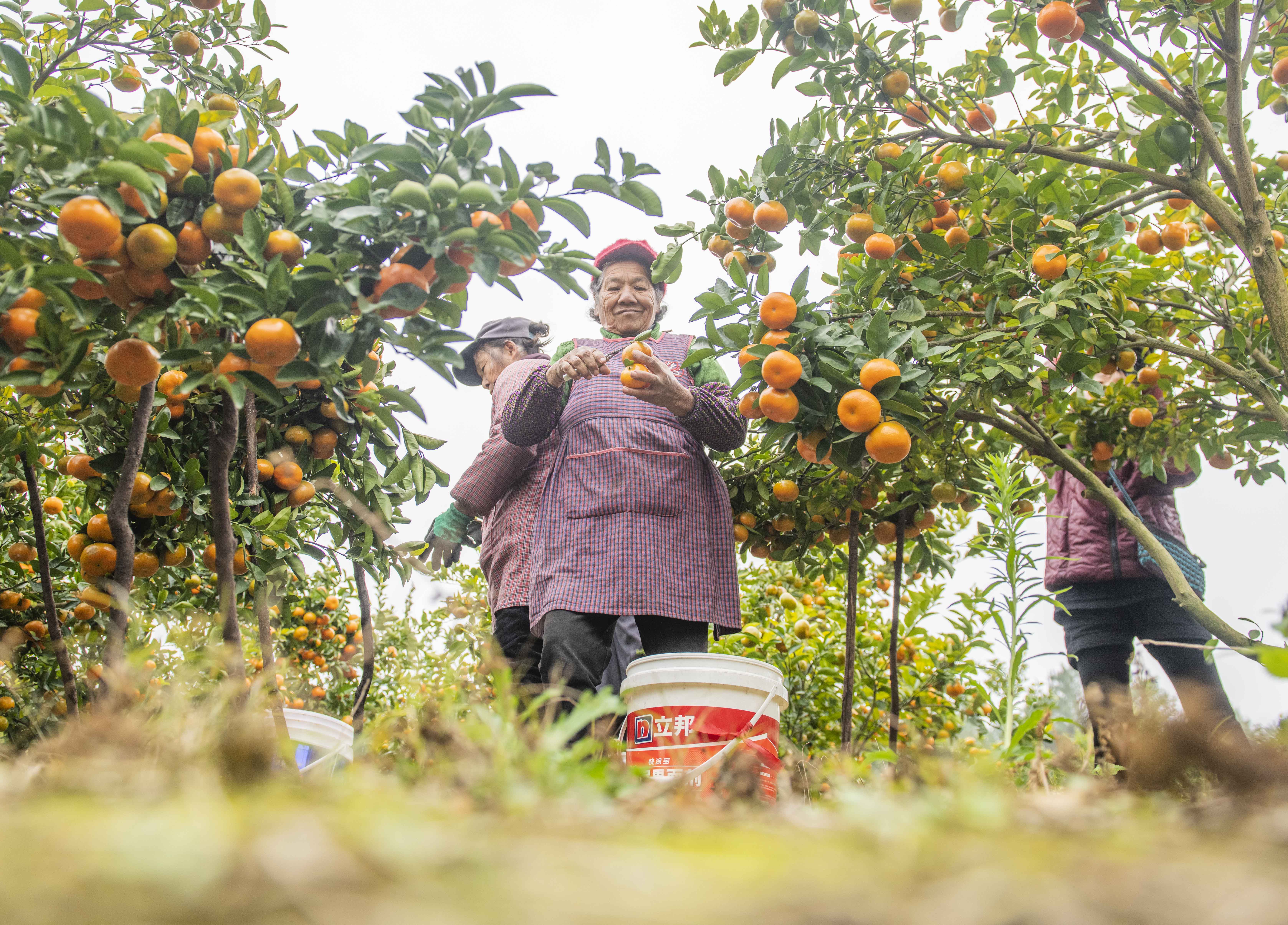 1月3日,在湖南省永州市道縣清塘鎮(zhèn)尹家村真秀農(nóng)業(yè)果園基地,農(nóng)民在采收柑橘。 新華社發(fā)(蔣克青 攝)