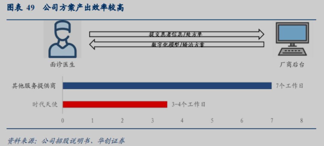 與眼科調(diào)節(jié)更依賴設(shè)備不同,牙科口腔科對醫(yī)生依賴的程度較高,一般來說,口腔醫(yī)院的人員工資占營收比例接近50%,是所有??漆t(yī)院里邊高的。因此,對于整個行業(yè)來說,擴(kuò)張的主要瓶頸就在于醫(yī)生數(shù)量不足。時代天使的市場份額能后來居上,就是靠打開了醫(yī)生市場。其一,給醫(yī)生做了一套“時代天使隱形矯治系統(tǒng)”,包括數(shù)字化輔助案例評估支持及矯治方案設(shè)計服務(wù),自動定制矯治方案,以及生產(chǎn)隱形矯治器。