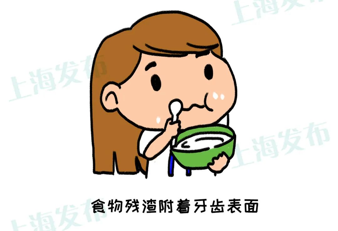 當牙齒表面的食物殘渣時,