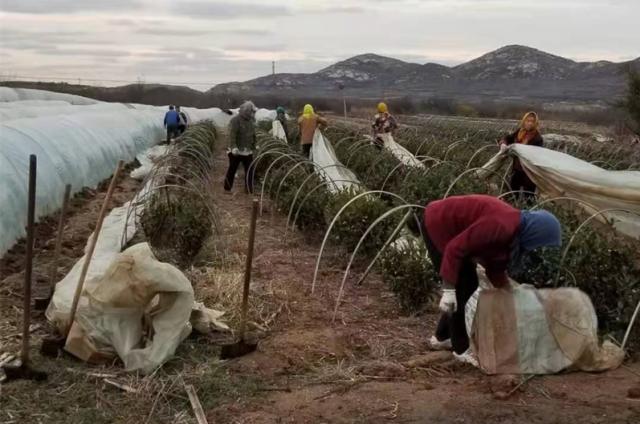 “在搭扣小拱棚前,先修剪好樹枝,之后每隔1米左右插一個弓形支架,與茶樹葉要間隔10厘米以上。在小雪節(jié)氣前后蓋膜,還要注意適時通風(fēng)換氣?!苯眨浾咦哌M(jìn)臺上殷家村茶園,只見一個個小拱棚有序排列,茶農(nóng)表示,南茶北移重要的就是解決過冬的問題,如今早晚溫度低,扣棚可以讓茶樹保暖。