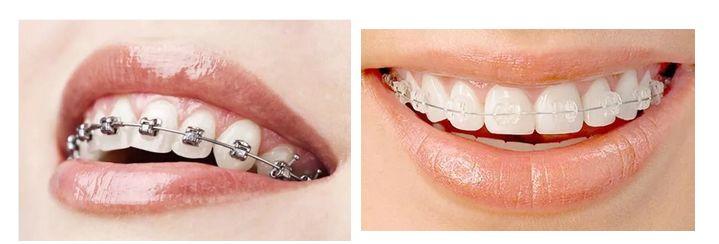 左:金屬托槽 右:陶瓷托槽