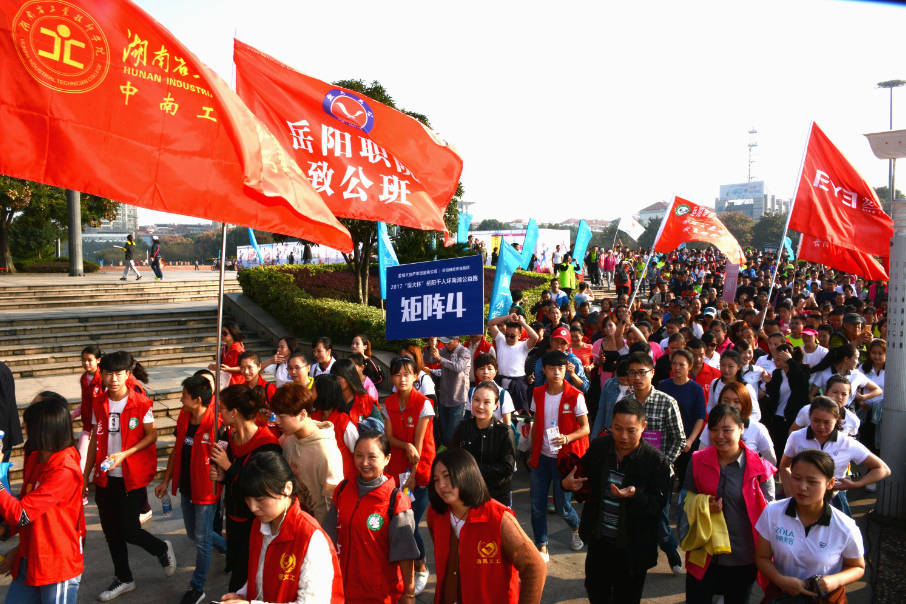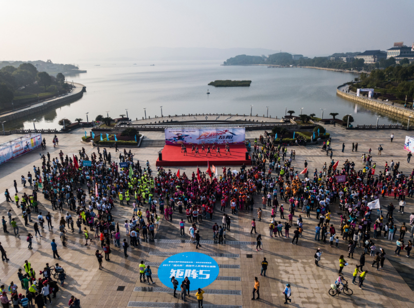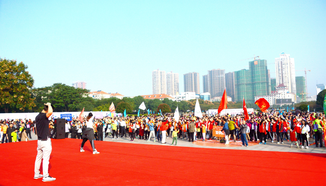 10月21日上午,艷陽(yáng)高照,南湖廣場(chǎng)上彩旗飄揚(yáng)、人頭攢動(dòng),在動(dòng)感的音樂(lè)聲中,2000多名公益志愿者激情開(kāi)跑——這是2017“恒大杯”“奔跑吧!岳陽(yáng)”千人環(huán)南湖公益跑活動(dòng)的現(xiàn)場(chǎng),10個(gè)方陣的隊(duì)伍圍繞南湖廣場(chǎng)→南湖賓館→南湖千畝湖走廊→南津渡口這一路線跑起來(lái),全程長(zhǎng)達(dá)5.18公里,在南湖畔掀起一場(chǎng)健康運(yùn)動(dòng)的熱潮。