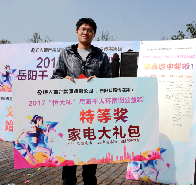 中獎(jiǎng)的是來(lái)自岳陽(yáng)職業(yè)技術(shù)學(xué)院致公班的學(xué)生謝裕佳。他中了特等獎(jiǎng),將獲得萬(wàn)元家電大禮包。他拿著獎(jiǎng)牌笑得合不攏嘴,一同來(lái)的10多個(gè)同學(xué)圍著他開(kāi)心地慶賀。