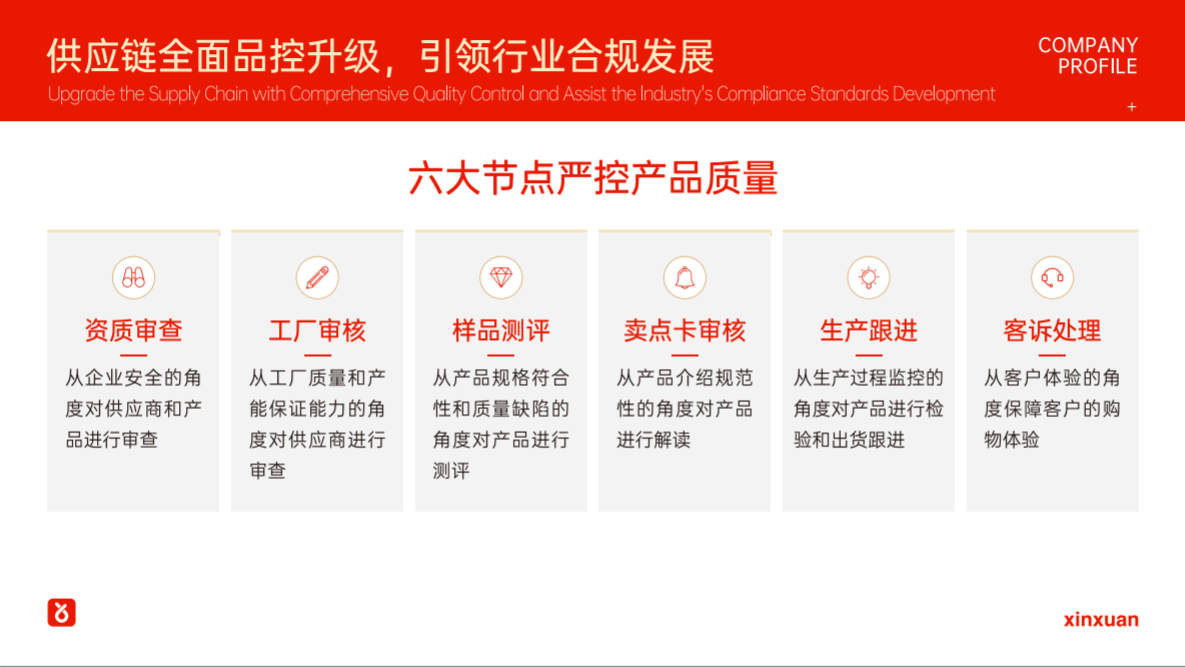 據(jù)辛選相關(guān)負責人介紹:“一款產(chǎn)品要想出現(xiàn)在辛選直播間,起碼要經(jīng)過六大環(huán)節(jié):資質(zhì)審查、工廠審核、樣品檢測、賣點卡審核、生產(chǎn)跟進、客訴處理。另有‘賣點卡’三審制,主播也是品控的重要一環(huán),我們要對用戶負責?!焙卯a(chǎn)品才能成為“爆款”,成就“爆品”,完成對消費者心智的占領(lǐng),建立供消之間的強連接。