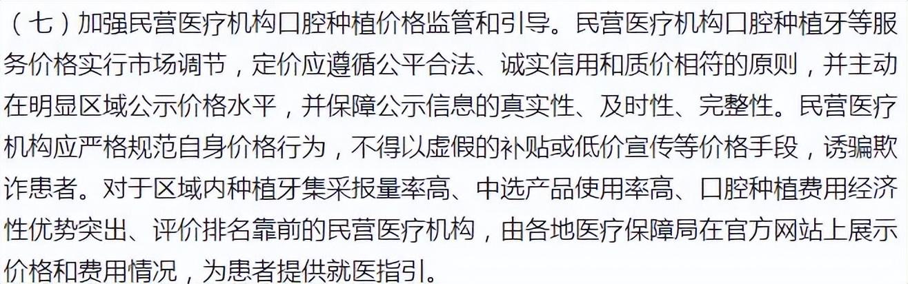 讀了幾遍征求意見(jiàn)稿,當(dāng)然后面可能還會(huì)根據(jù)有關(guān)意見(jiàn)建議進(jìn)行修改,但大差不差,說(shuō)說(shuō)我的感受,種植牙價(jià)格調(diào)控主要還是針對(duì)公立醫(yī)院,基本每條說(shuō)的都是公立醫(yī)院,提到民營(yíng)醫(yī)院(診所)就下面一條。