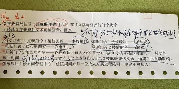 手術(shù)時(shí)間確認(rèn)后,王醫(yī)生給我開了一張住院申請(qǐng)單,送到1樓日間手術(shù)管理中心,然后前往3樓收費(fèi)掛號(hào)麻醉評(píng)估,具體流程和檢查事項(xiàng)可以查看下面圖片信息: