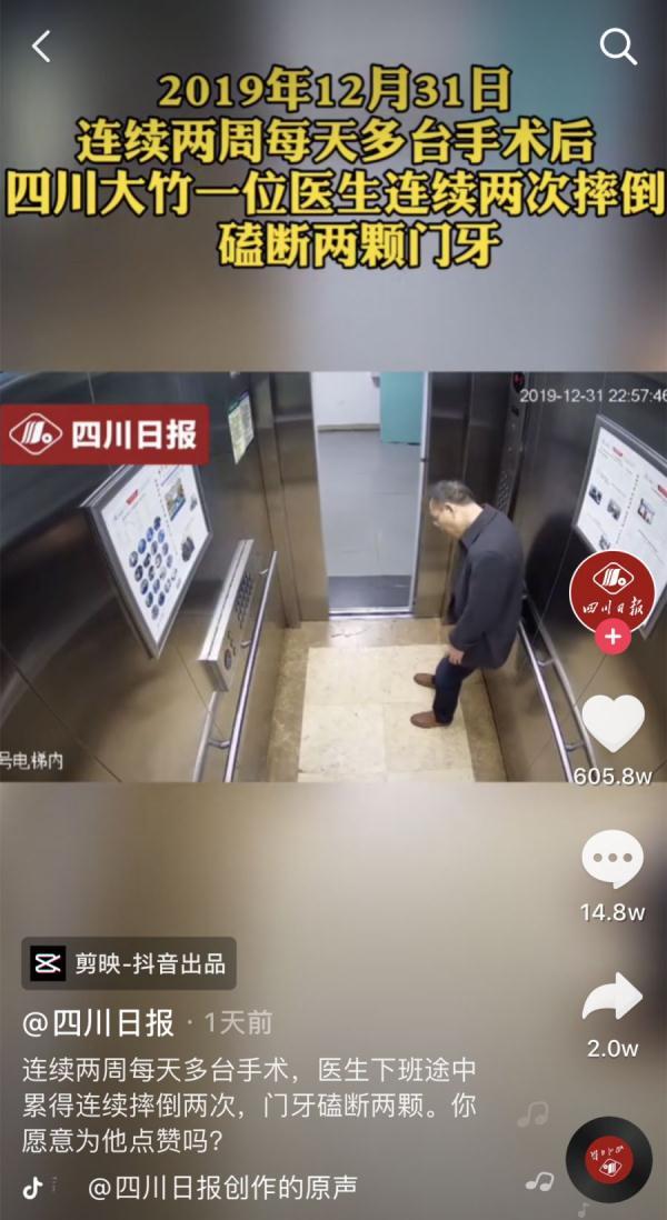 2019年的后幾分鐘,當(dāng)大家都在喜慶的氛圍當(dāng)中迎接新年的到來,就在這時,大竹縣人民醫(yī)院普外二科楊文凱主任卻在工作崗位操勞過度,倒下了,由于長期超負(fù)荷的工作強(qiáng)度以及近期開展普外科難度大的一項(xiàng)新技術(shù)(腹腔鏡胰十二指腸切除術(shù)),過度勞累,在深夜回家的途中兩次發(fā)生暈厥,時間長達(dá)5分多鐘,并且導(dǎo)致多枚牙齒斷裂及軟組織傷。