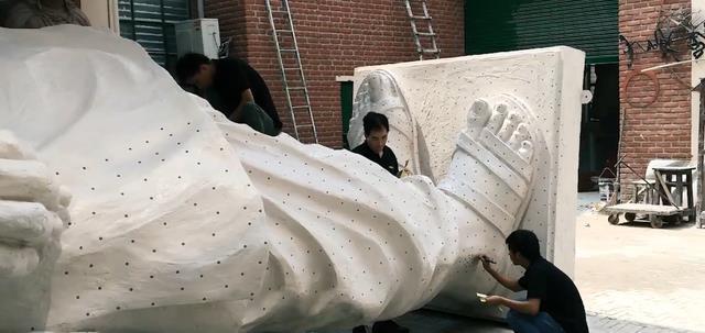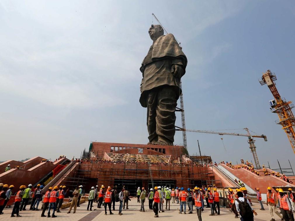 因為落后的生產(chǎn)力,印度國內(nèi)的建筑水平根本無法適應(yīng)應(yīng)付如此龐大的工程,換句話講,步子邁大了容易扯了蛋,但高層們哪款這些,我們要的就是面子,你不能建,那就找外包商,于是很快在工程開始后不久,印度大的設(shè)計公司就把這項艱難的工程交給了中國制造,要說這個建筑也確實是超出了印度的能力,拋去人工設(shè)計不說,單單是雕像外層就要用到的青銅板就超過了1700噸,這還不算里面多達(dá)1850噸的青銅,事后一合計,僅材料費(fèi)一項就已經(jīng)接近了5億美元。