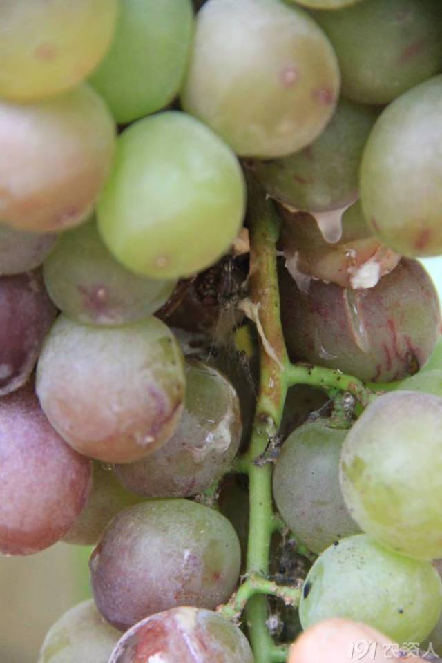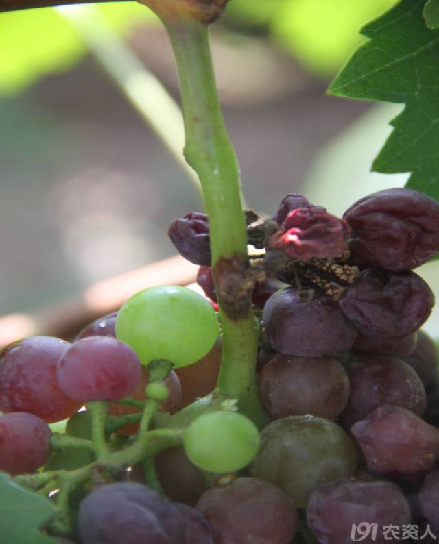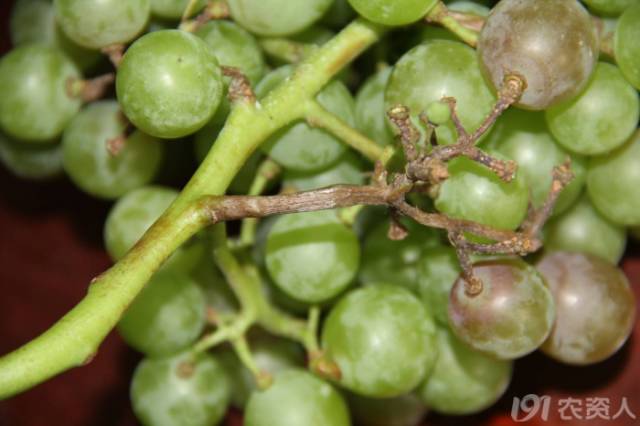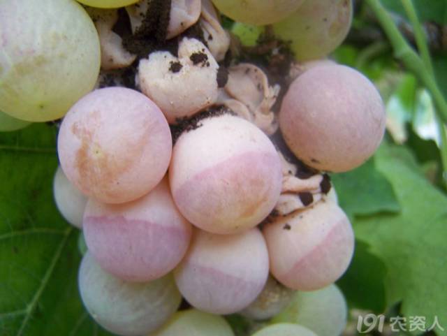 日灼。在6、7月份注意預(yù)防,留一些副梢,給果子遮遮陽。