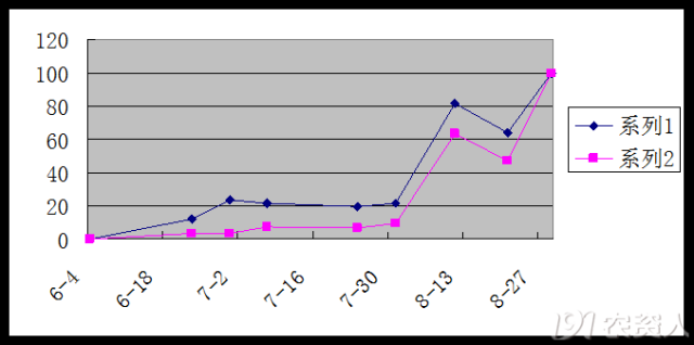 3)發(fā)病時期:北方一般年份6月即可發(fā)病,8-9月為發(fā)病盛期,早5月初。