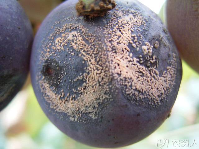 4)發(fā)?。?/strong>2個時期,開花前-幼果期,主要危害花及幼果前期;果實(shí)著色-成熟貯運(yùn),主要危害葡萄漿果。