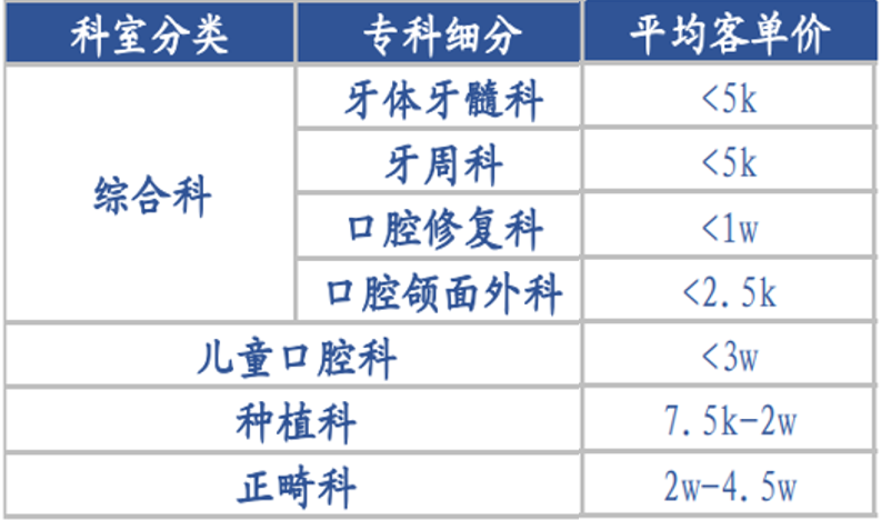 口腔醫(yī)療服務(wù)大致可分為種植、正畸和口腔外科三類,其中,平均客單價(jià)高的兩大業(yè)務(wù)是口腔種植和正畸。