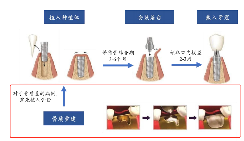 如果患者骨量不理想,則須先完成骨質(zhì)重建,以達(dá)到種植要求。