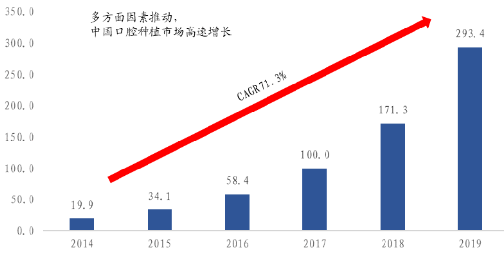 不過,近年來在人口老齡化、消費(fèi)升級(jí)等邏輯驅(qū)動(dòng)下,國內(nèi)口腔種植市場呈高速增長態(tài)勢,根據(jù)Straumann的年報(bào)數(shù)據(jù)估計(jì),2019年相關(guān)市場規(guī)模接近300億元,按照與發(fā)達(dá)對比,未來總體規(guī)模可達(dá)2000億元。
