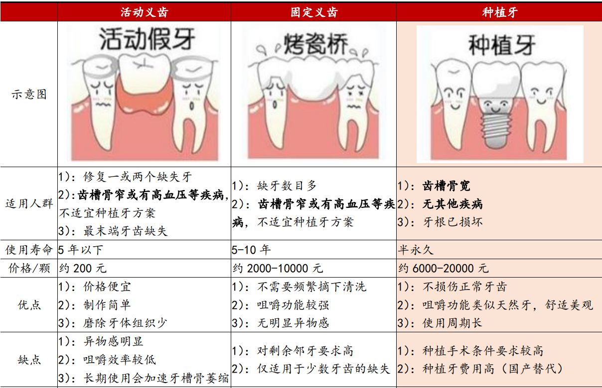 牙齒修復(fù)的方式主要有三種:活動(dòng)義齒、固定義齒、種植牙。