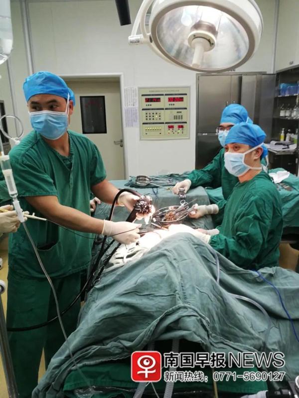 當天中午,小李轉(zhuǎn)到欽州市第一人民醫(yī)院,檢查出腹部CT提示胃、十二指腸內(nèi)多種異物,為避免出現(xiàn)刺傷劃傷消化道,該院決定通過手術(shù)調(diào)節(jié)。