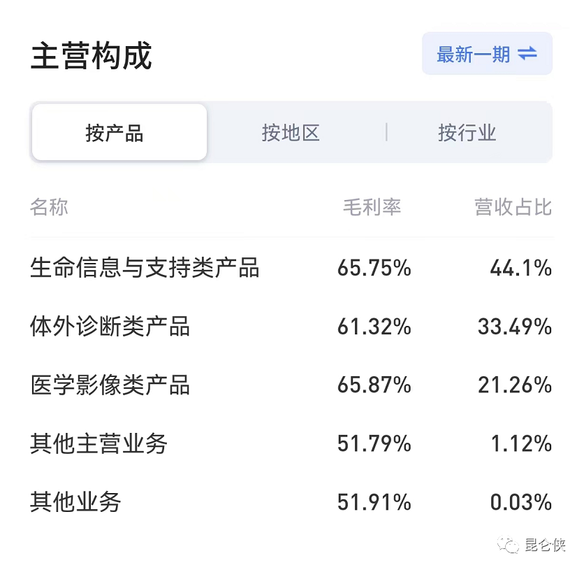 三大業(yè)務(wù)板塊的營收占比如下圖所示,目前營收占比大的是生命信息與支持產(chǎn)品,也是公司的傳統(tǒng)優(yōu)勢產(chǎn)品,體外診斷產(chǎn)品是近年來增速快的板塊,也是未來3-5年有發(fā)展?jié)摿Φ漠a(chǎn)品大類。