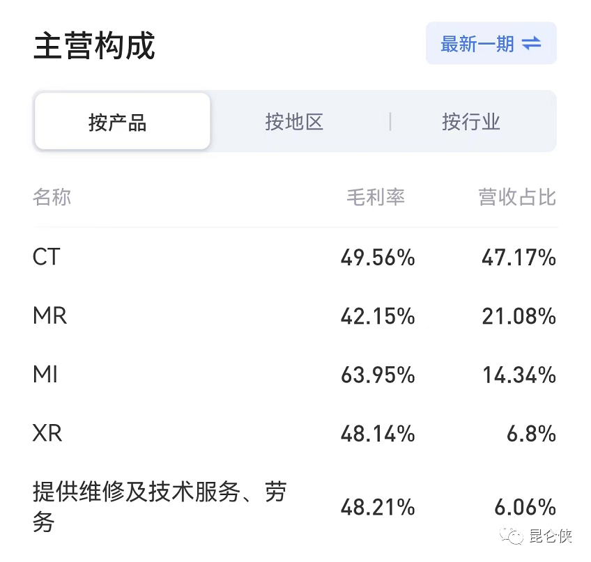 對(duì)比之后我們會(huì)發(fā)現(xiàn)邁瑞和聯(lián)影只在影像設(shè)備領(lǐng)域存在交集,且二者目前只在 X 射線成像系統(tǒng)(XR)這一細(xì)分市場中會(huì)產(chǎn)生競爭關(guān)系,且兩者在該領(lǐng)域的營收都有限,都不是主力產(chǎn)品。